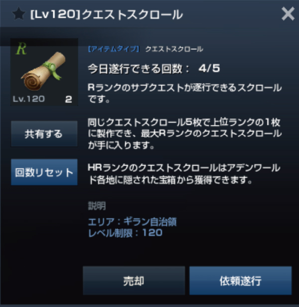 この中で、Lv120クエストスクロールというものが存在します。