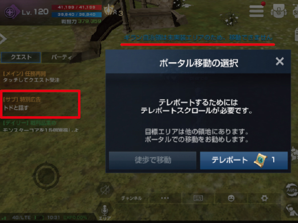 ですが、徒歩で移動しようとしても、テレポートで飛ぼうとしても・・・