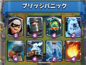 アイスゴーレムを盾にダークプリンス・攻城バーバリアンが突進します。相手が対応している間を縫ってアサシンユーノが突撃してくるパニックデッキです。