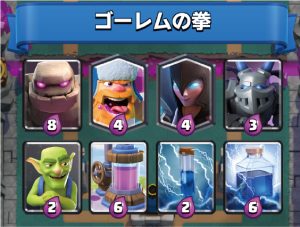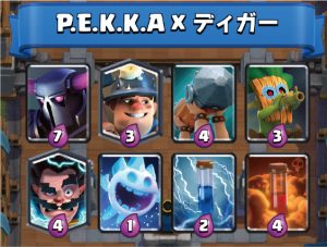 このデッキの盾役は高コストのペッカです。破壊力抜群ですが細かなユニットの大群に弱いので、ザップやポイズン、吹き矢ゴブリン・エレクトロウィザードで支援してあげましょう。