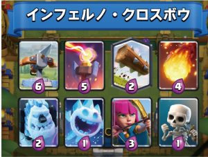 相手のカウンターのガーゴイルなどを予想し、矢の雨を放つ準備を怠らないようにしましょう。また、インフェルノタワーなどの高火力カウンターにも弱いので、相手が高コストユニットで対応してくるようならタワーを絡めてライトニングを打ってやりましょう。