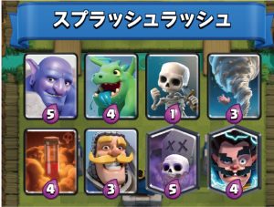 軽めの盾役のナイトを先頭に、地上はボウラー・空中はベビードラゴンで後方支援し、相手陣地に攻め入ったらスケルトンラッシュで相手を混乱させましょう。スケルトンラッシュにはポイズンの重ね掛けが効果的です。