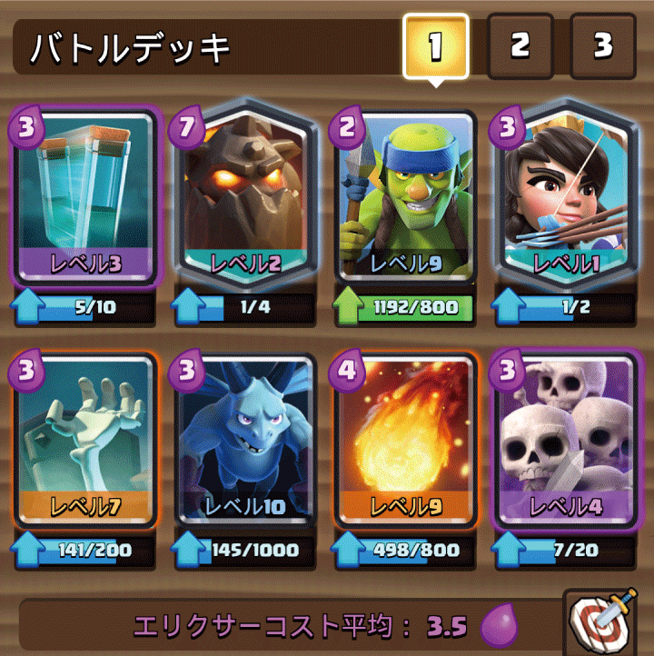 このデッキの弱点は、防衛ユニットも紙装甲なのでザップなどの魔法で一瞬で防衛ユニットが居なくなってしまう場合がある事です。
