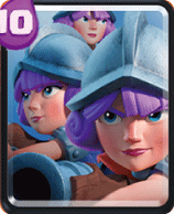 こちらは正統派な力押しタイプです。左右の壁役として見習い親衛隊が展開している後方から三銃士が後方支援する方法です。三銃士のコストが高いので、見習い親衛隊は後方から配置しエリクサーの回復を図りましょう。