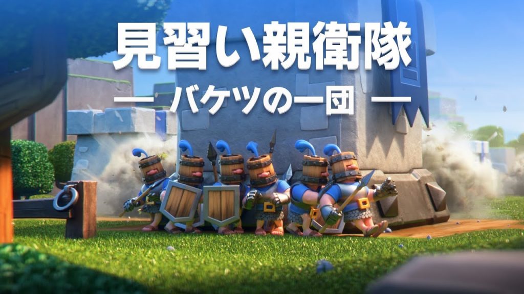 見習い親衛隊はエリクサー6でバーバリアン級の耐久力(盾含め)を持ったユニットを横一列に6体配置するカードです。